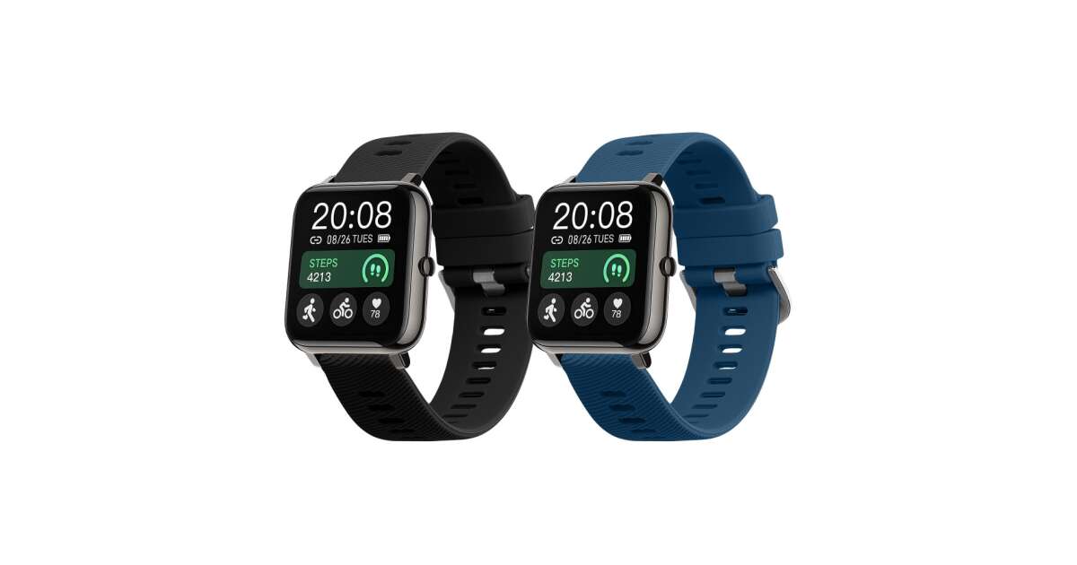 - 2 x Szilikon szíj Popglory P66-hoz (fekete és kék)