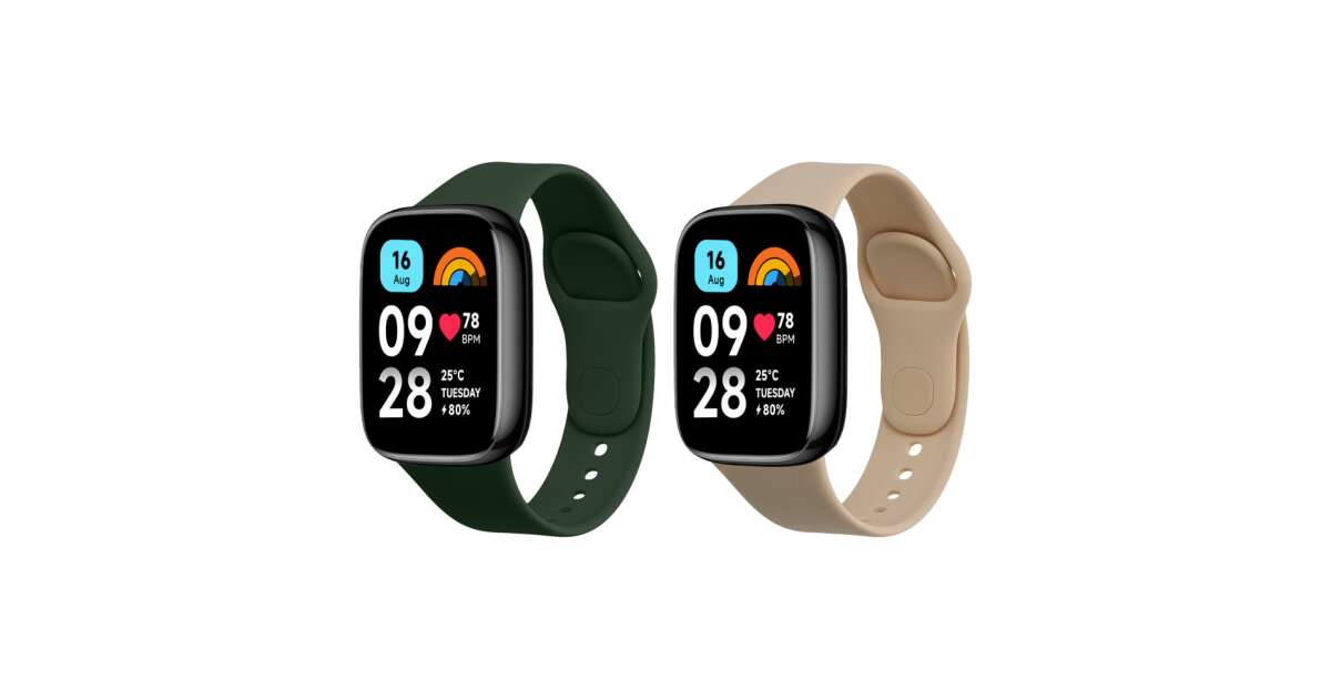 - 2 x Szilikon szíj Xiaomi Redmi Watch 3 Active okosórához (sötétzöld és bézs)