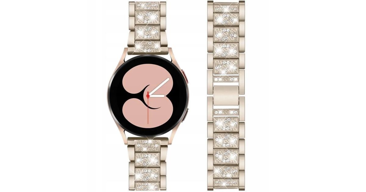 Divatos női okosóra karkötő 20 mm-es távcsövekhez való tartóval, pl. Samsung, Garmin, Huawei készülékekhez. A karkötőt kristályok díszítik, amelyek elegáns megjelenést kölcsönöznek neki. Ez az egyedi okosóra karkötő rozsdamentes acélból, a legnagyobb gondossággal készült. 20 mm-es rögzítési szélességű okosóra karkötőnk tökéletesen illeszkedik és teljesen működőképes.