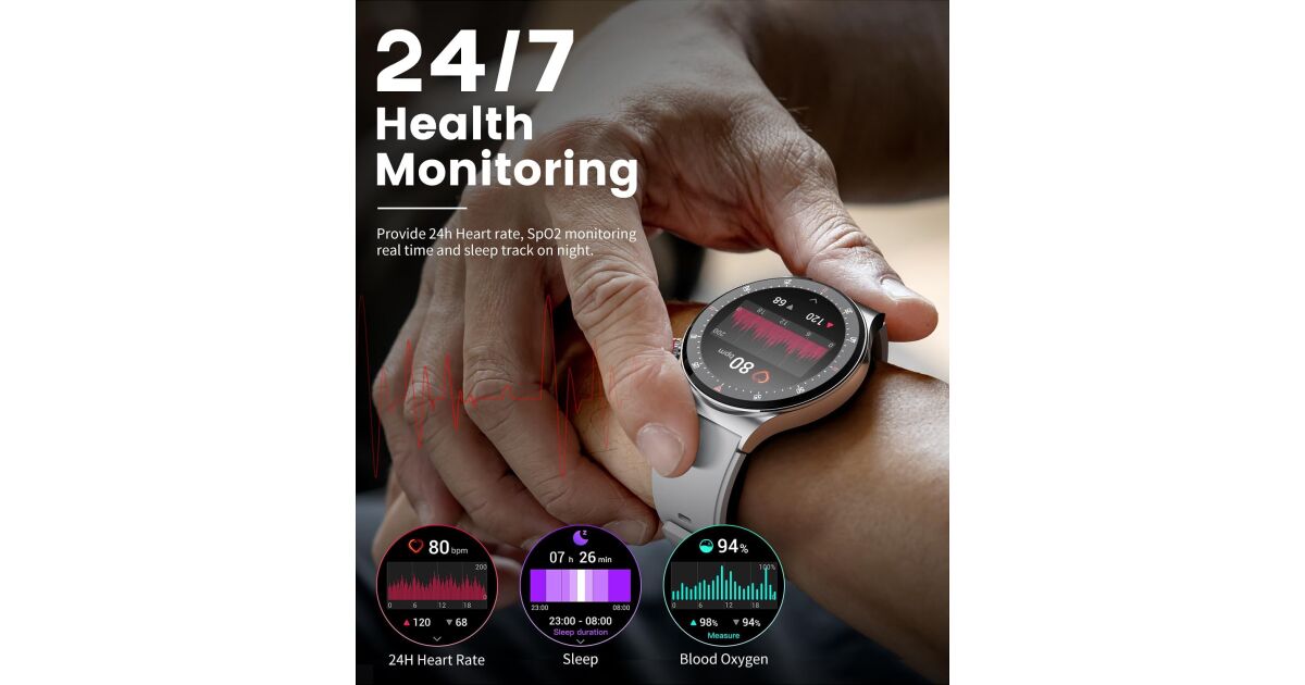 - Egészség monitorozás: Mérd a pulzusodat, az alvásodat és a véroxigénszintedet (SpO2).