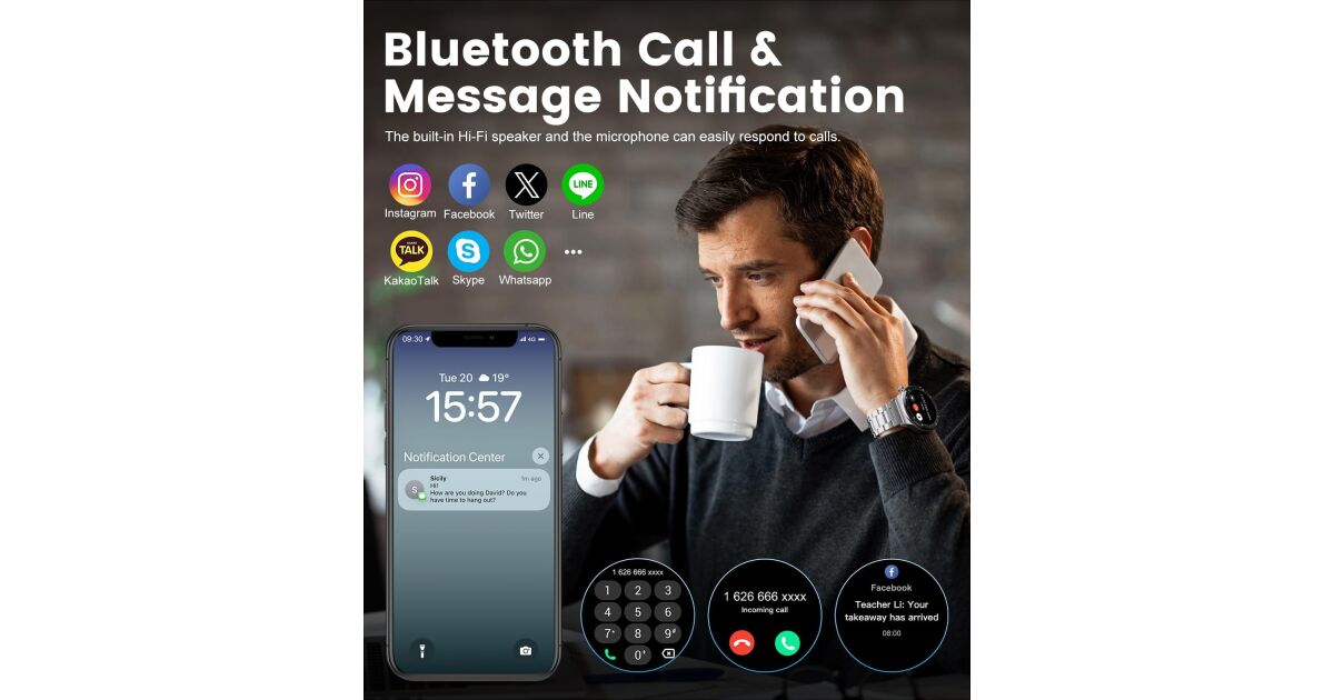 - Bluetooth hívás: Fogadj és indíts hívásokat közvetlenül az órádról.