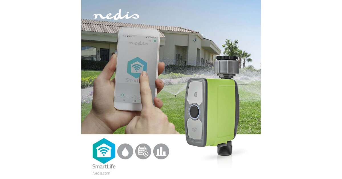 A Nedis SmartLife öntözésvezérlő a kültéri vízcsapot intelligens vízforrássá alakítja, amelyet okostelefonja vagy a beépített gomb segítségével ütemezhet. Megbízhatóan szabályozza a növények vagy a gyep öntözését a mindennapokon, még akkor is, ha Ön nincs otthon. Egyszerűen szerelje fel az öntözésvezérlőt a vízcsap és az öntözőberendezés vagy a locsolótömlő közé (nincs szükség szerszámokra), és közvetlenül Bluetooth-kapcsolaton keresztül csatlakoztassa a Nedis SmartLife telefonos alkalmazáshoz.