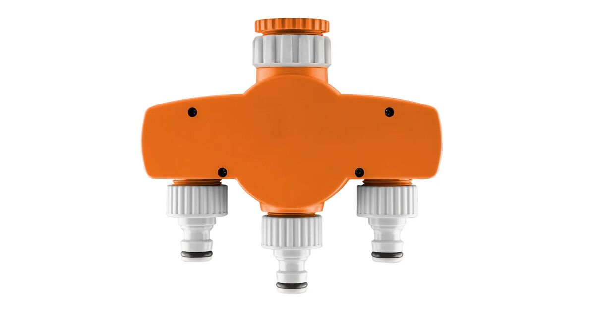 Neo Tools TOP-15-750 mechanikus öntözőidőzítő óra, 3 utas, max.120perc, Narancs/Fehér leírása
