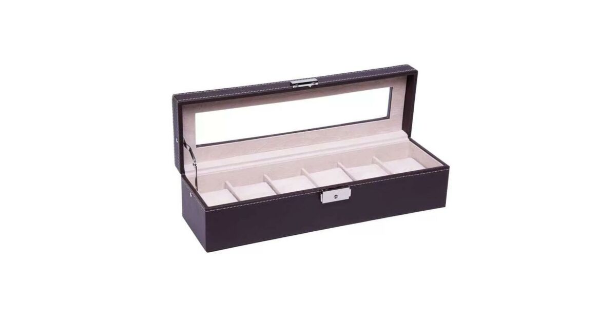 Ezt a terméket így is ismerheted: Barna varrott óratartó doboz 6 db órához
