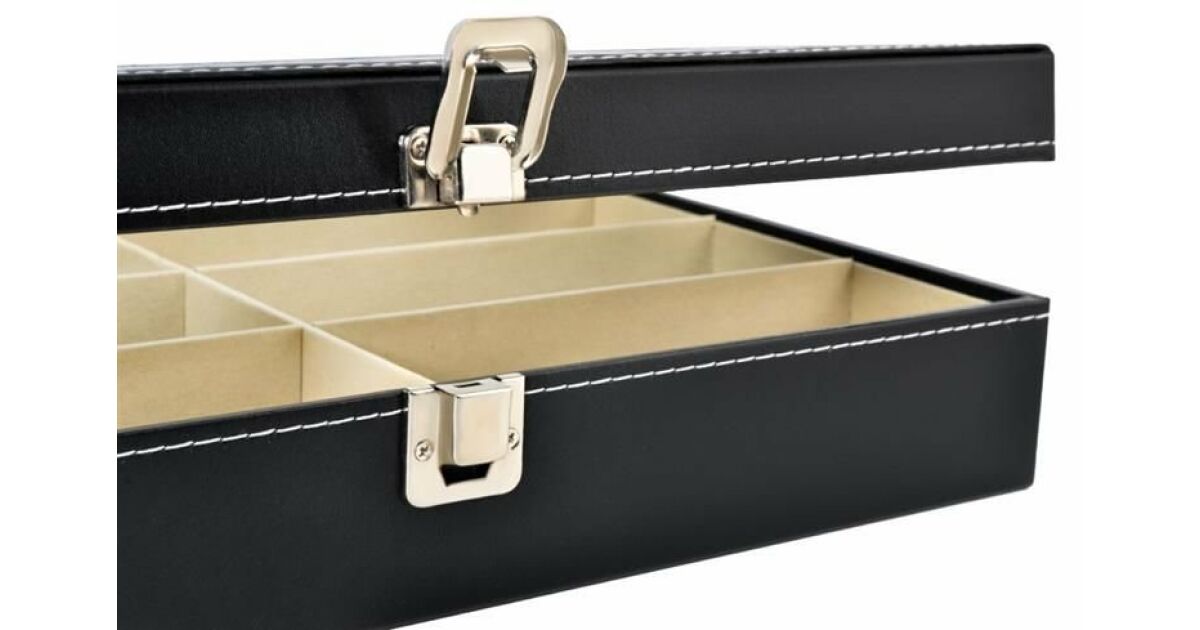 Bőr napszemüvegtartó doboz, szemüveg rendszerező- 8 db rekesszel, fekete leírása
