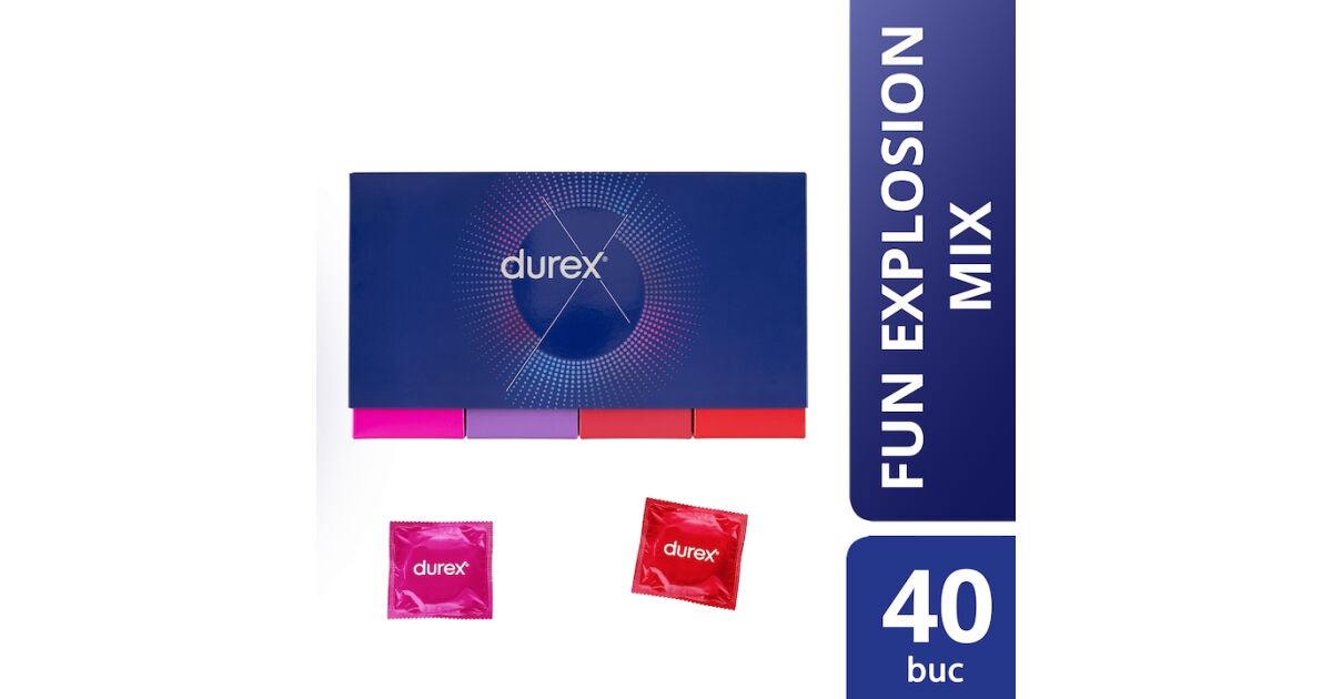 Durex óvszer 40 db, diszkrét dobozban - Fun Explosion Durex Fun Explosion nagyméretű doboz a hihetetlenül szórakoztató érzésekhez - 40 darab