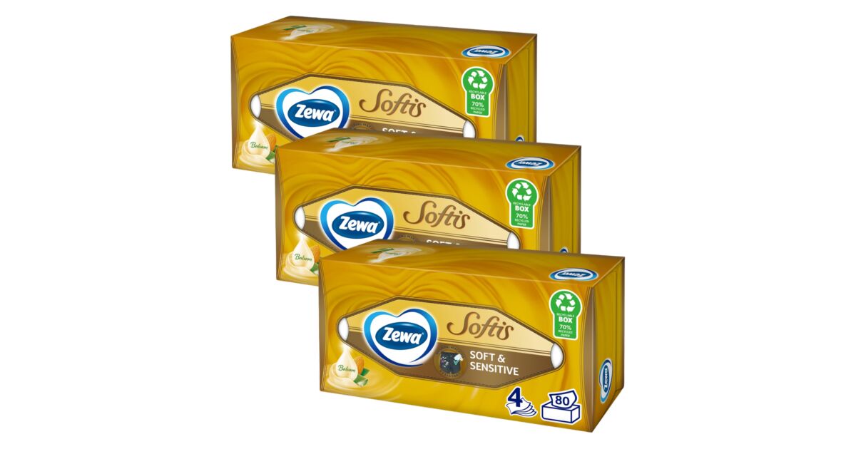 Ezt a terméket így is ismerheted: Zewa Softis Soft&Sensitive 4 rétegű dobozos Papír zsebkendő 3x80db