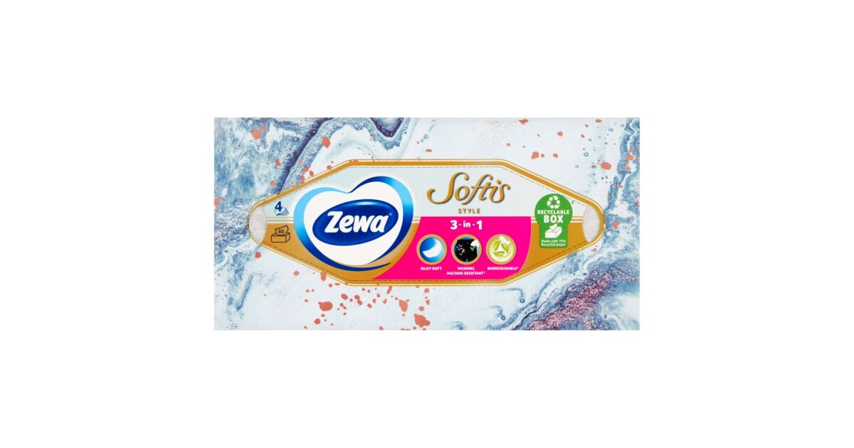 Ezt a terméket így is ismerheted: Zewa Softis Style 4 rétegű dobozos Papír zsebkendő 80db