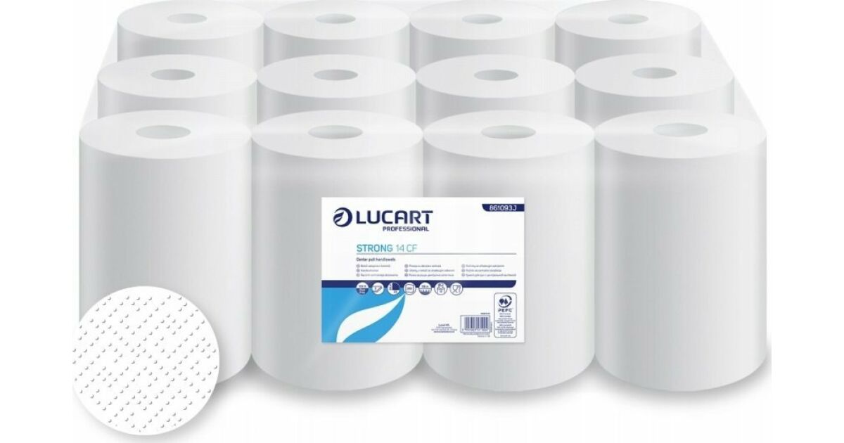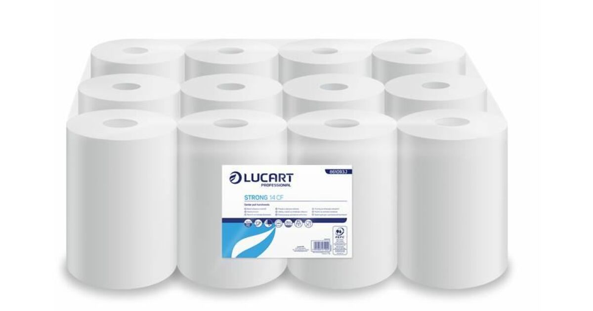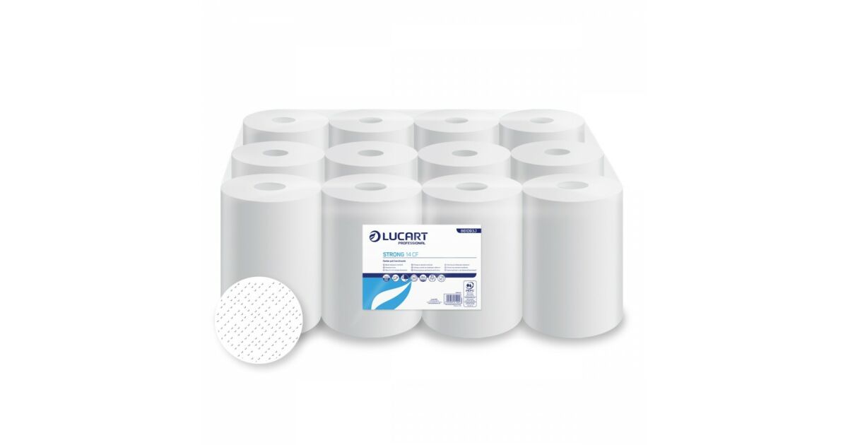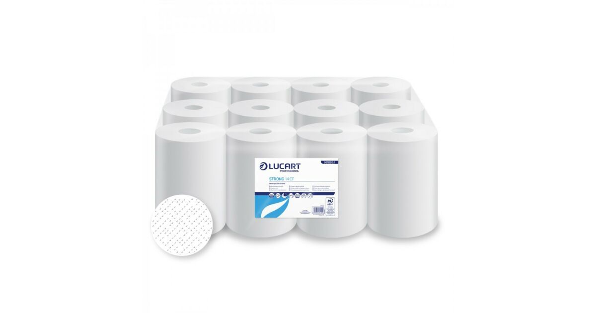 LUCART Törlőkendő, tekercses, belső adagolású, 2 rétegű, LUCART "Strong 14 CF", hófehér leírása