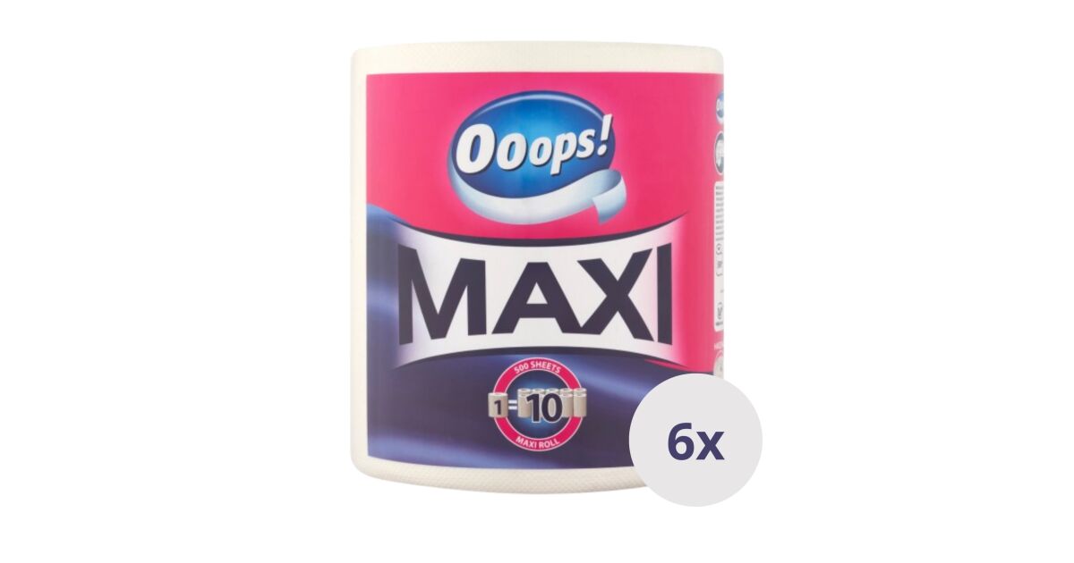 Az Ooops! Maxi papírtörlő remek választás háztartási munkákhoz, de szépségszalonban, étteremben, autóápolásnál egyaránt tökéletes társ. A 2 rétegű, kiváló nedvszívó képességű papírtörlő praktikusan, a tekercs belsejéből is téphető. Az 500 lapos tekercs 10 normál konyhai papírtörlő tekercs laphosszával egyenlő.