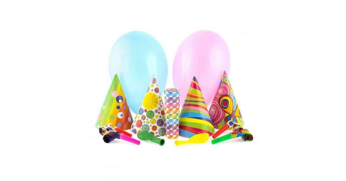 Ezt a terméket így is ismerheted: Vidám Parti Szett - 13 db Lufi, Sapka, Fúvóka, Szerpentin