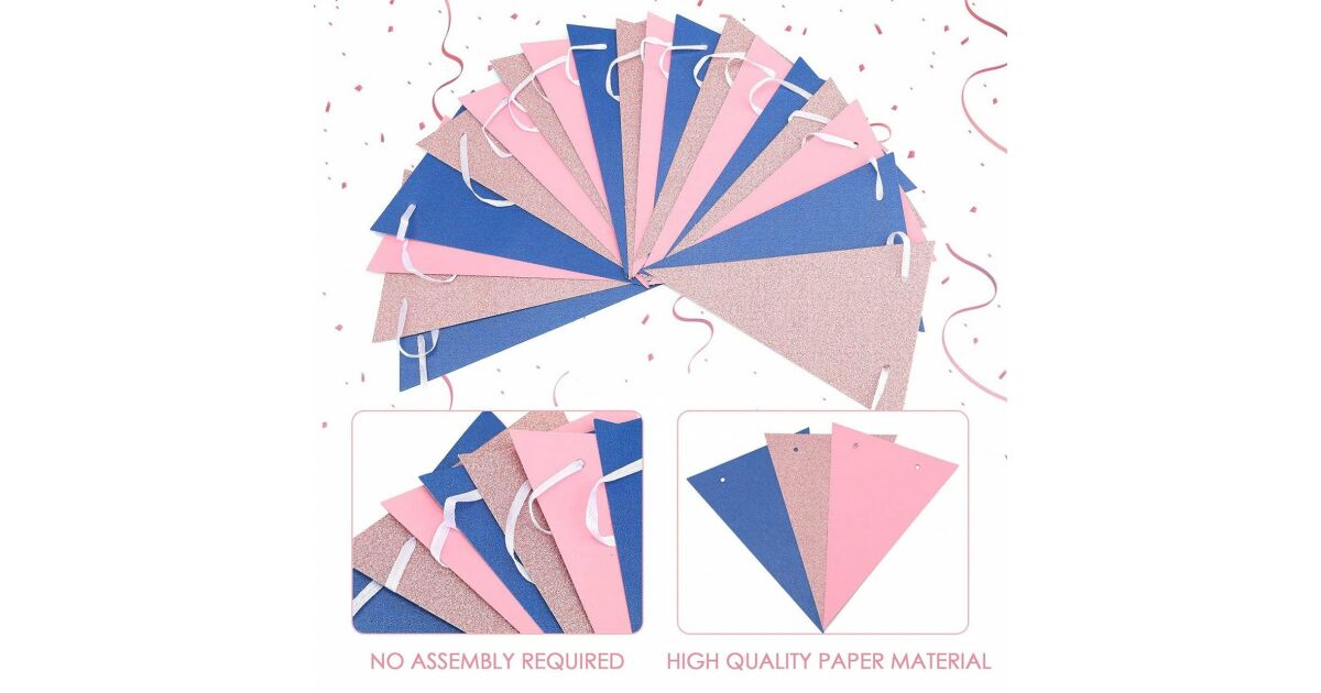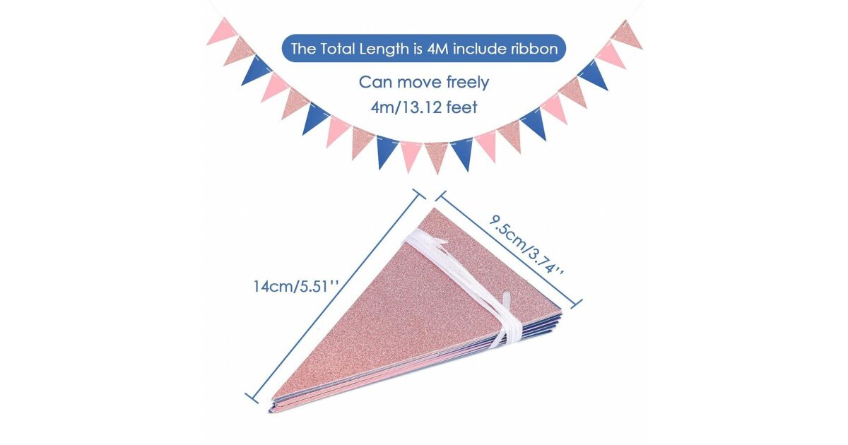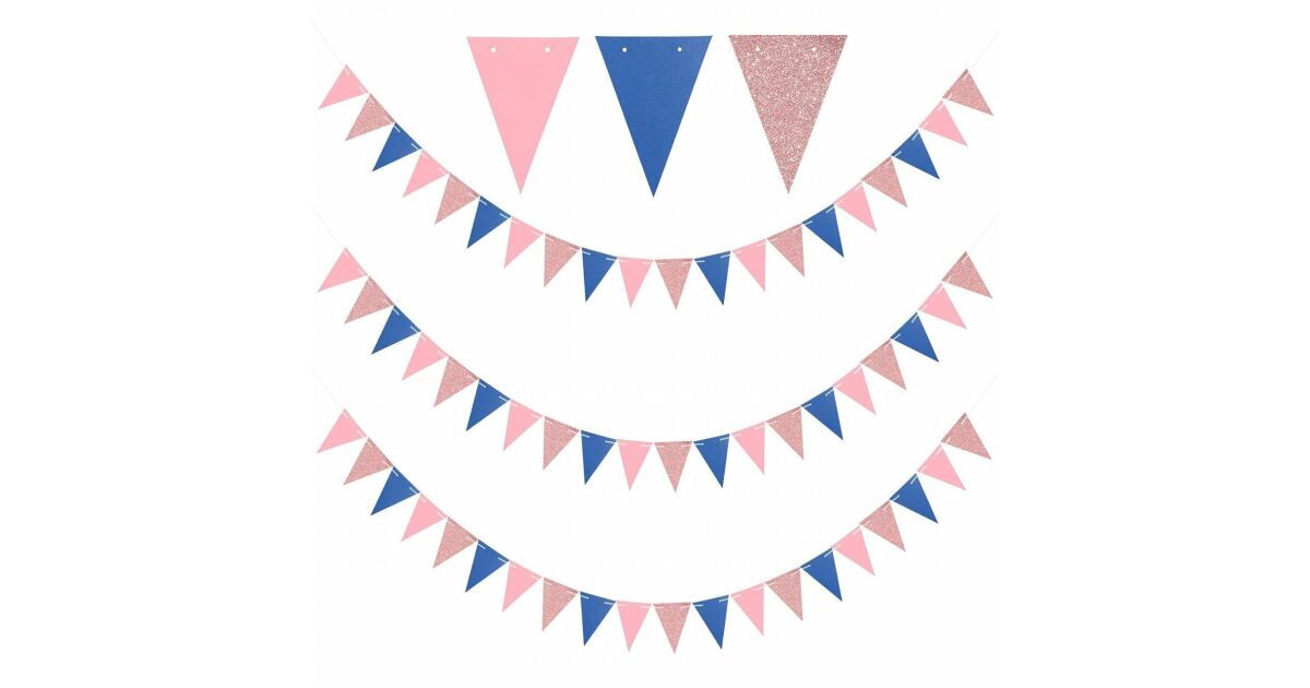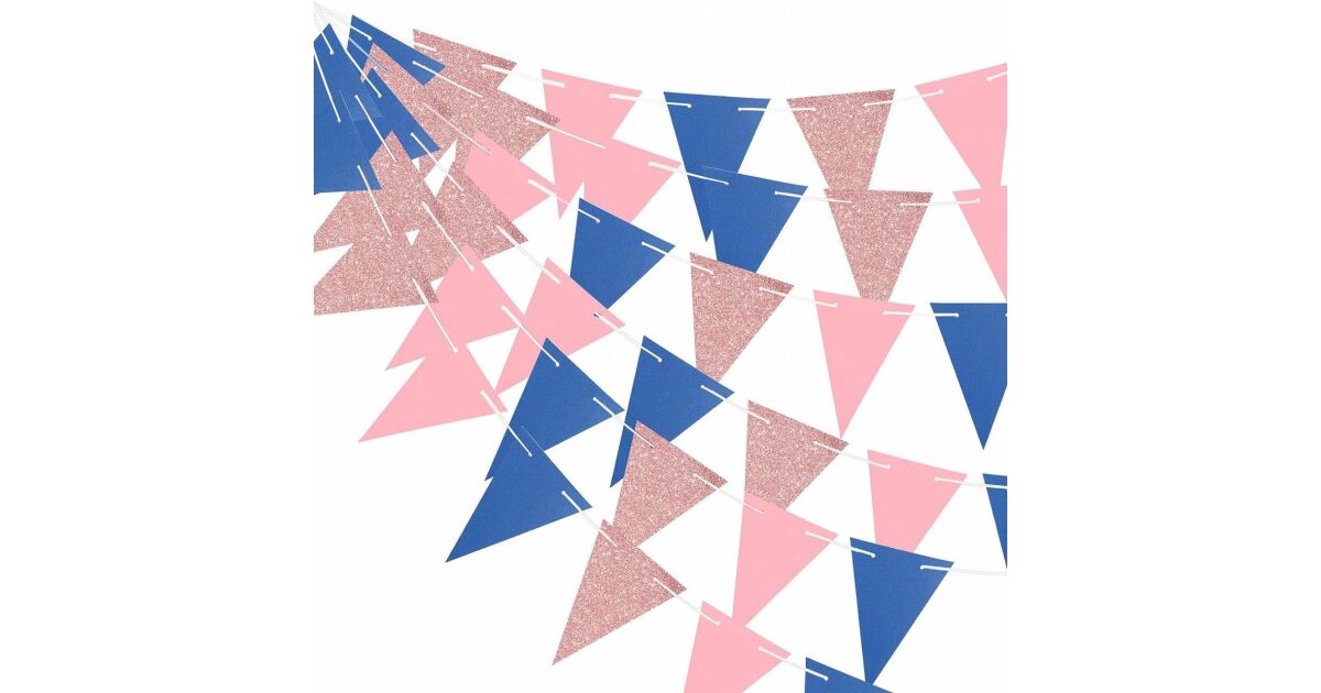 Háromszög alakú girlandok - rózsaszín és tengerészkék - 4m 🎉