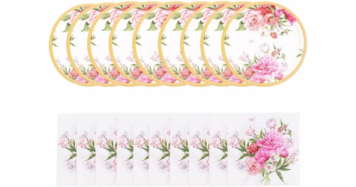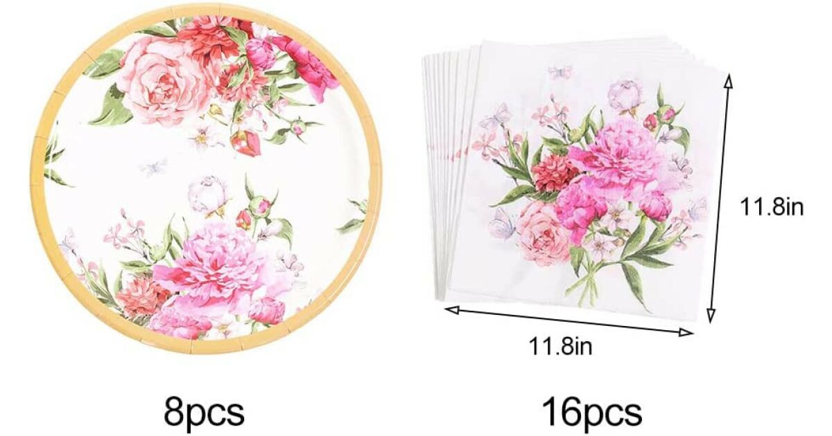 Party kellékek: 8 tányér + 16 szalvéta, finom virágokkal 🌸