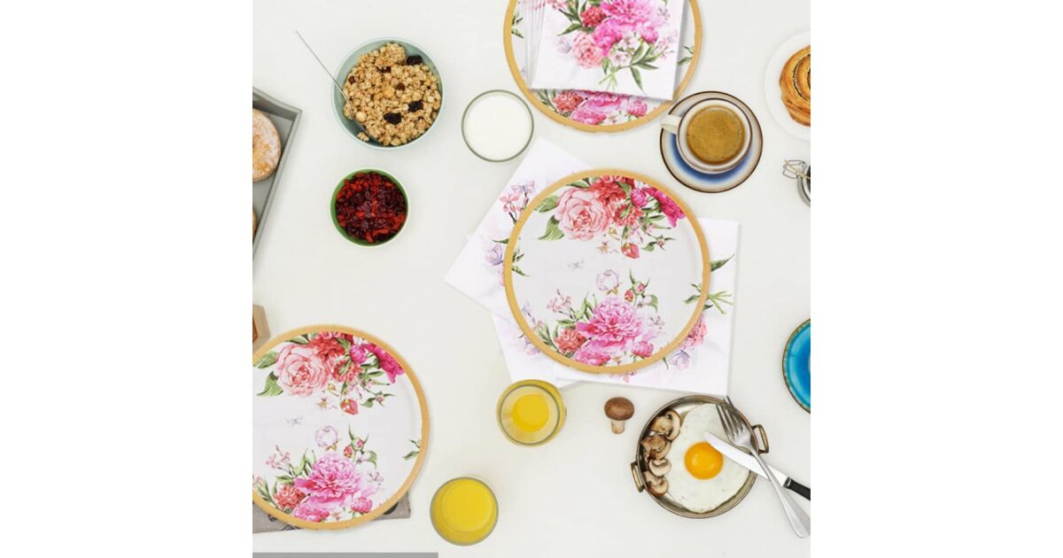 Ez az elegáns eldobható tányér- és szalvétakészlet tökéletes ünnepi hangulatot teremt bármilyen partin. A finom, pasztell színű virágmintájával ez a készlet egy csipetnyi kifinomultságot kölcsönöz az asztalodnak.