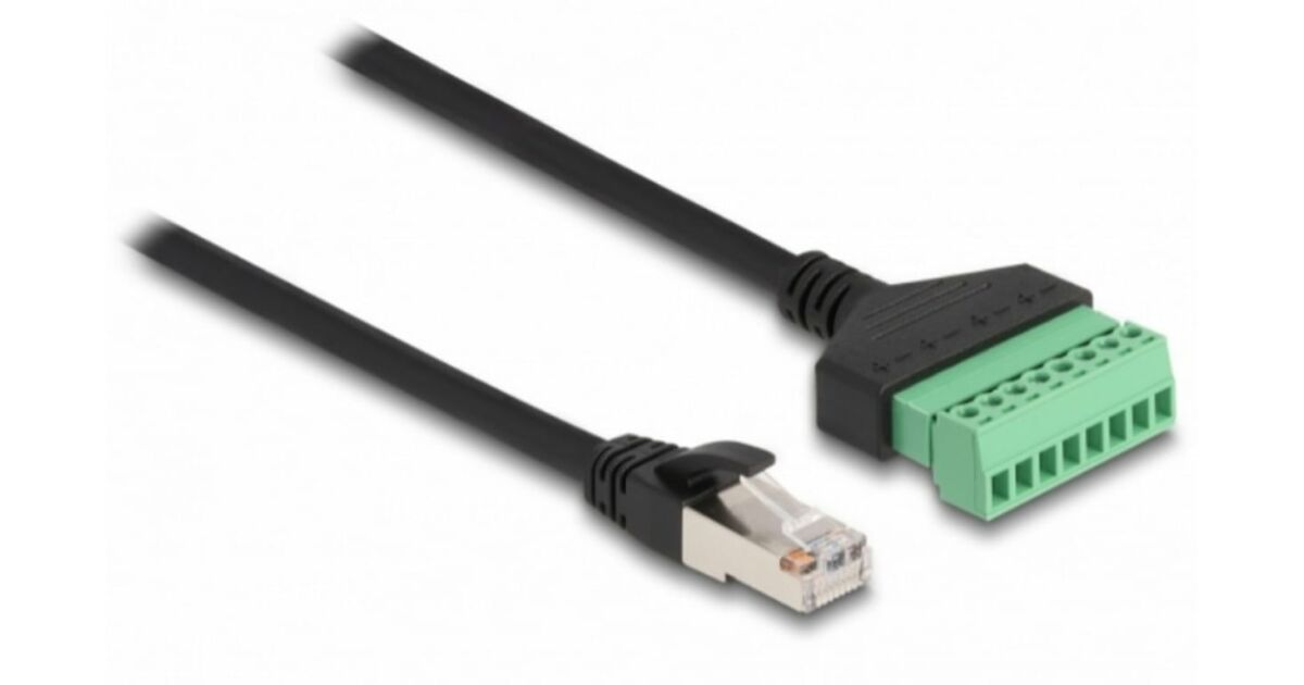 Ez a Delock RJ45 Cat.6 hálózati kábel tökéletes megoldás hálózati eszközök gyors és egyszerű csatlakoztatására. A kábel egyik végén szabványos RJ45 csatlakozó, a másikon pedig egy praktikus terminálblokk található, ami megkönnyíti a vezetékek csatlakoztatását.