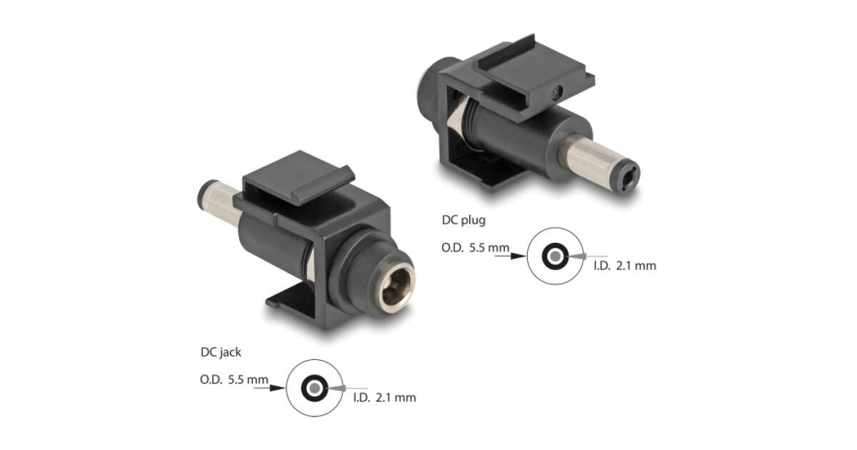 Delock Keystone modul, DC 5,5 x 2,1 mm-csatlakozóhüvely, DC 5,5 x 2,1 mm méretű apa, fekete leírása