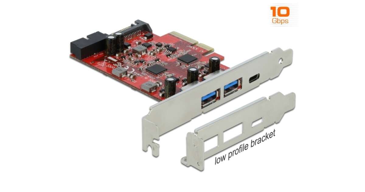 Delock PCI Express x4 Kártya - 1 x külső USB Type-C anya + 2 x külső A-típusú USB anya SuperSpeed U