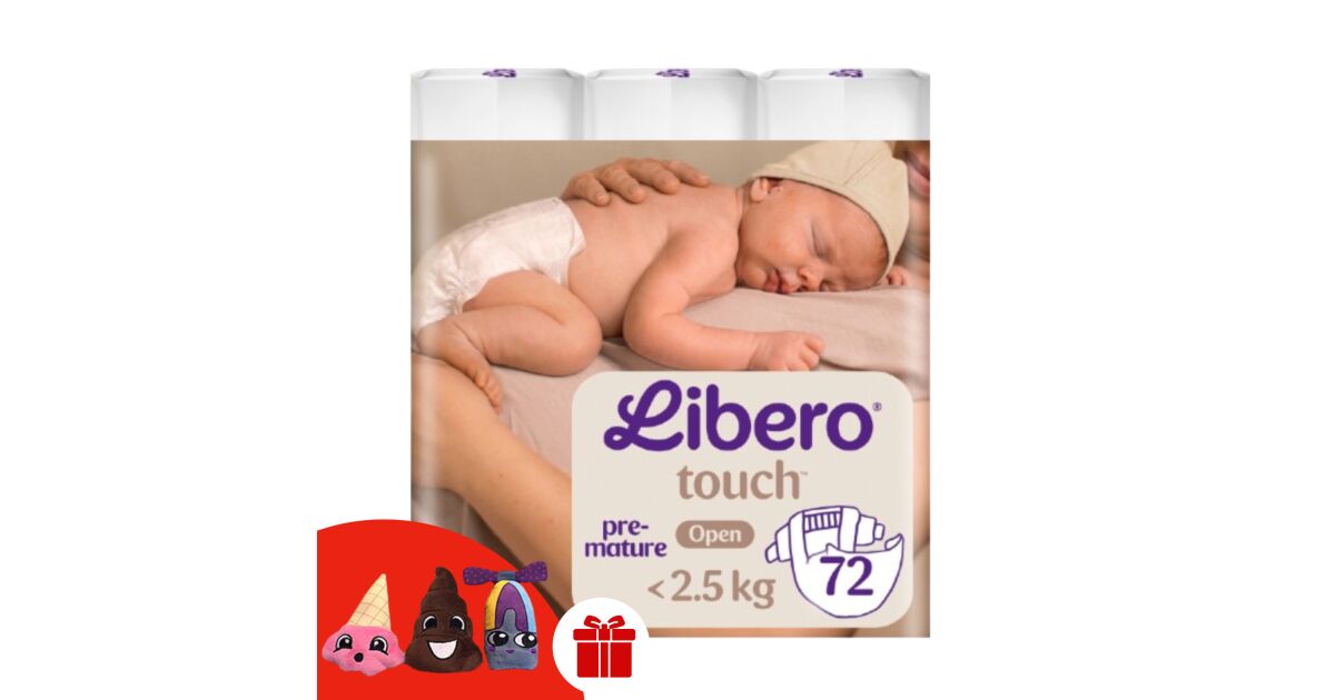 Ezt a terméket így is ismerheted: Libero Touch Pelenka koraszülött 0-2, 5kg Newborn (72db) + Ajándék 3 db Ujjbáb