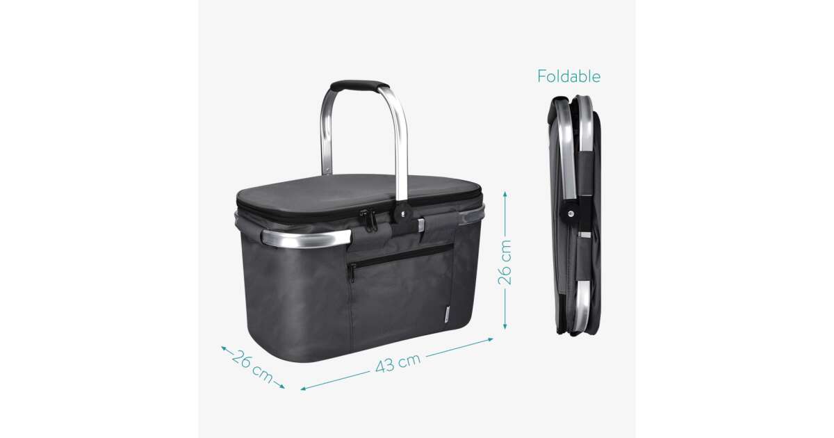 Összecsukható pikniktáska Navaris fogantyúval, 27 L, Szigetelt, Fekete, 45859.22 leírása