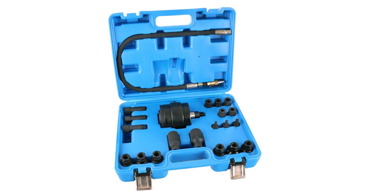 Ez a 22 részes pneumatikus injektorlehúzó és elszívó készlet minden szükséges adapterrel együttműködik a legtöbb dízel injektor cseréjéhez. A robusztus kivitelű szerszámkészlettel gyorsan és egyszerűen elvégezhető a munka.