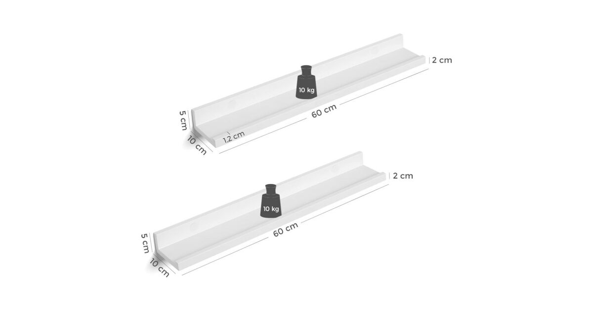 2 db Fehér Lebegő Fali Polc - 60 x 10 cm - Modern Design leírása
