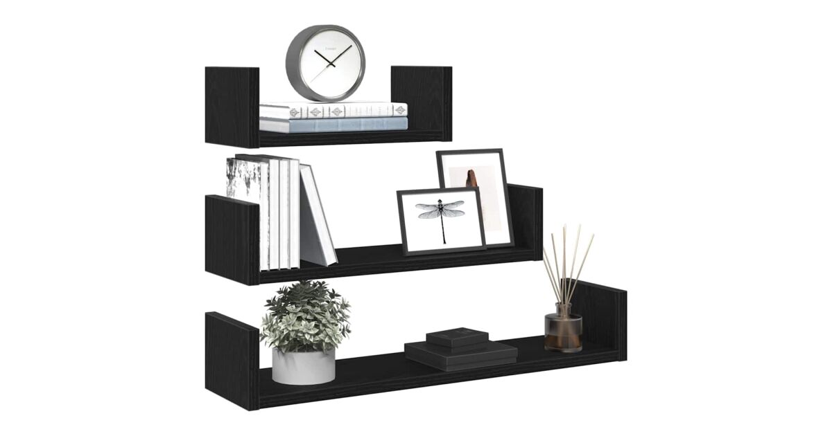 Elegáns és praktikus megoldást keresel otthonod tárolására és dekorálására? Ez a 3 darabos fekete tölgy fali polc szett tökéletes választás!