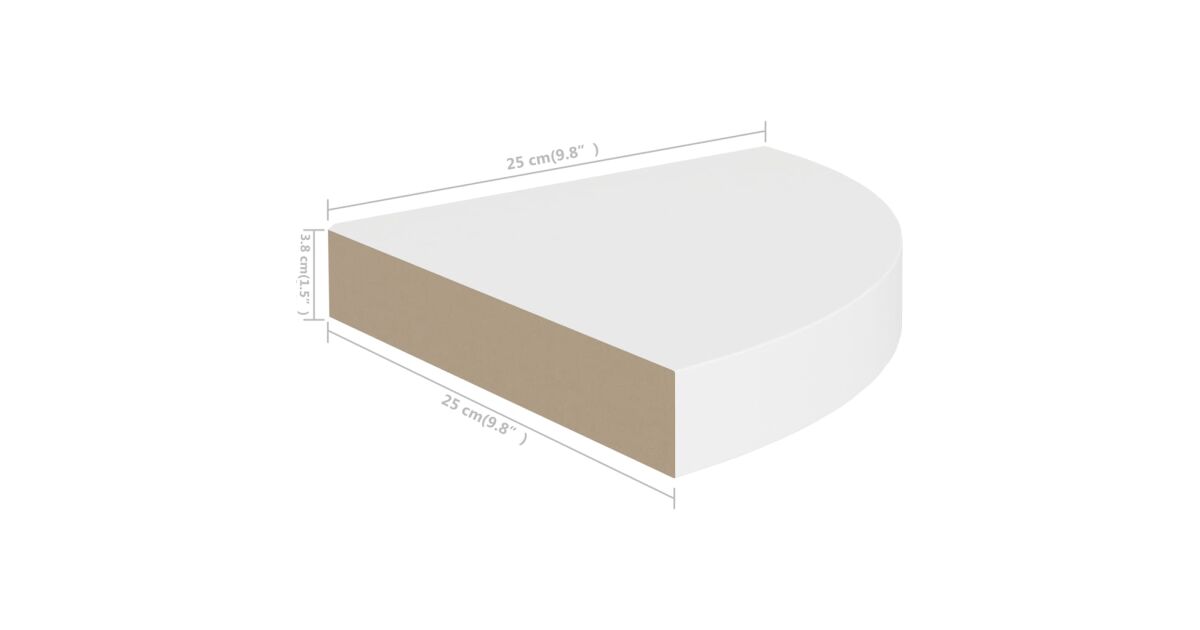 4 db magasfényű fehér mdf lebegő sarokpolc 25 x 25 x 3,8 cm leírása