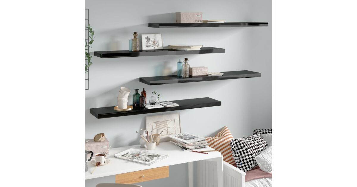 Magasfényű Fekete Fali Polc Szett (4 db) - Stílus és Funkcionalitás Egyben! ✨