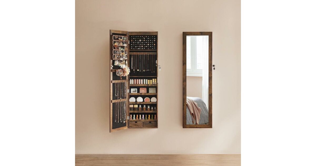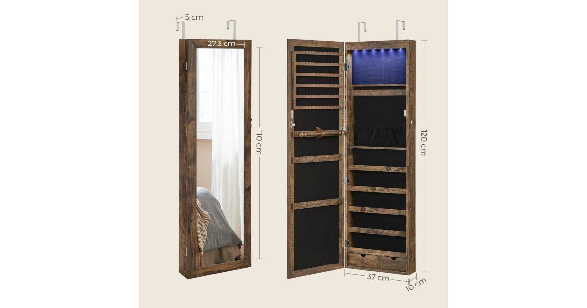 Rusztikus barna faliszekrény tükörrel ékszerekhez - Tökéletes rendszerezés és stílusos megjelenés ✨