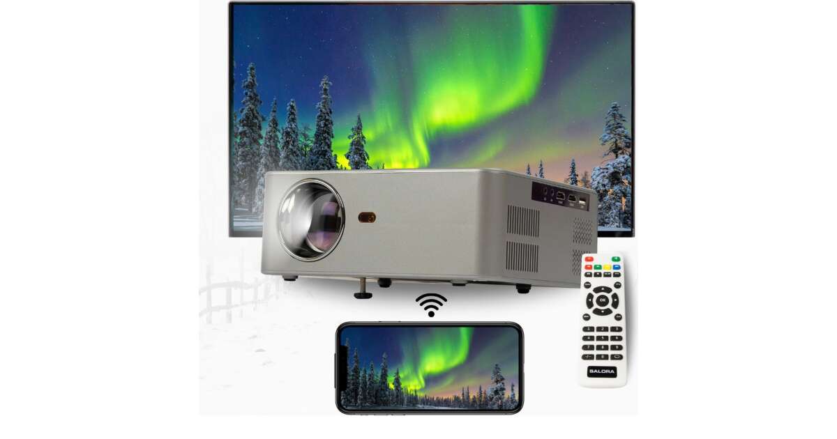 Salora hordozható videoprojektor, integrált Wi-Fi, Házimozi, HD, 2200 lumen, 1280x720 felbontás, 16:9, HDMI port, USB, integrált hangszóró, kompakt, távirányítóval, szürke