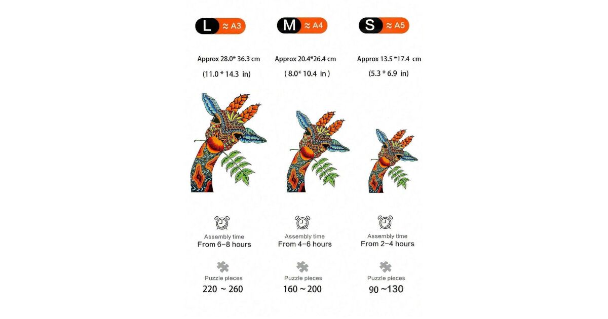Ezt a terméket így is ismerheted: 1 db - Zsiráf mintás Fa Kirakó- Szabálytalan Állat Alakú Puzzle Darabokkal -A3-as(L) méretben