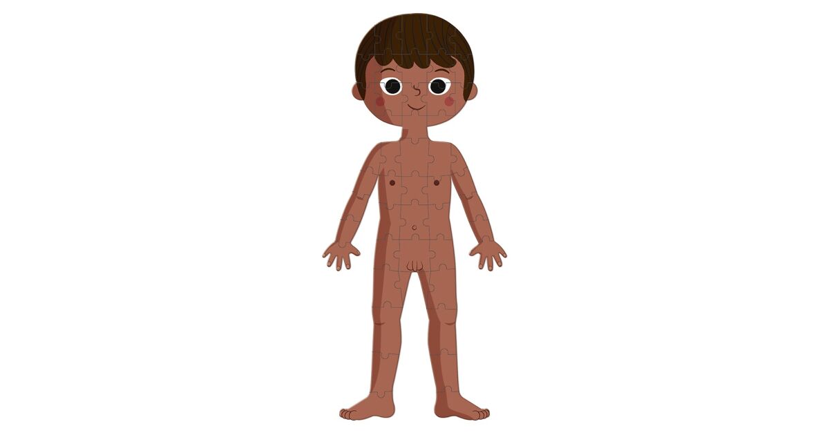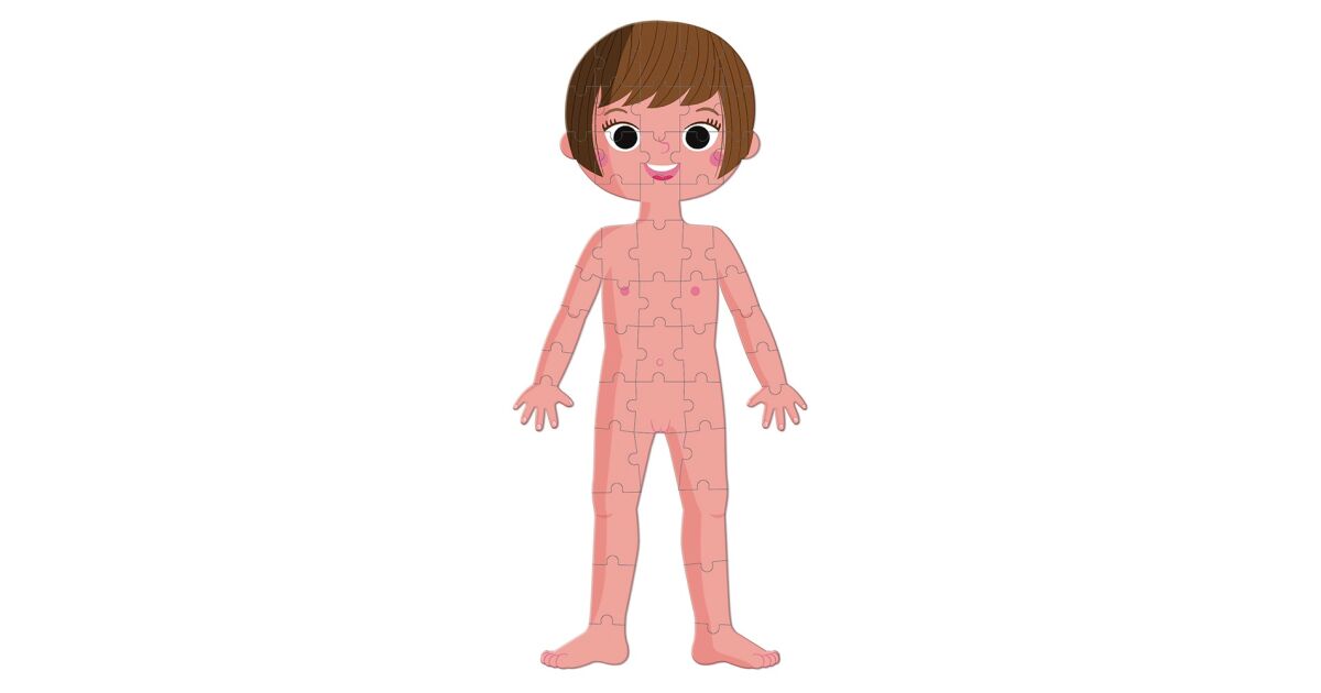 - 50 darabos kétoldalas puzzle: Fiút és különböző bőrtónusú lányt ábrázol. Tökéletes az alapvető anatómia megismerésére.
