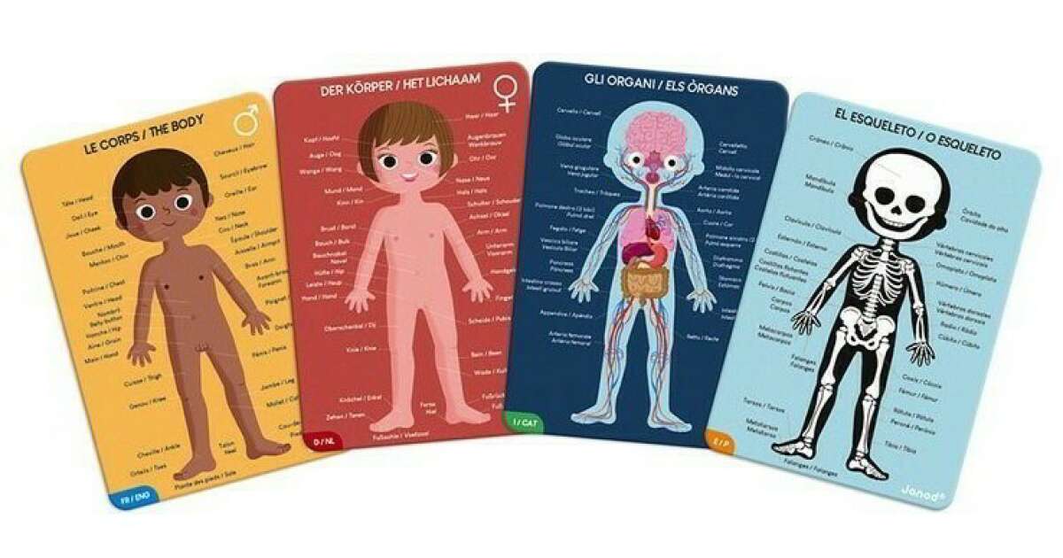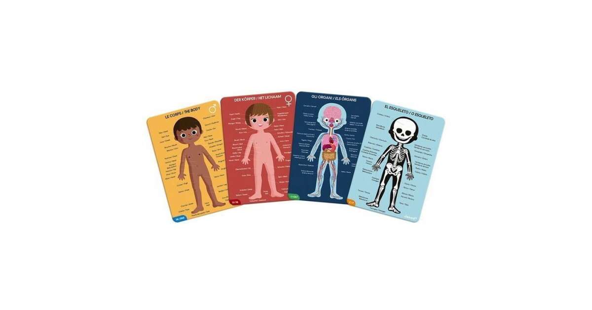 - 12 nyelven elérhető tanulókártyák: A kártyák segítenek a különböző testrészek és szervek megismerésében.