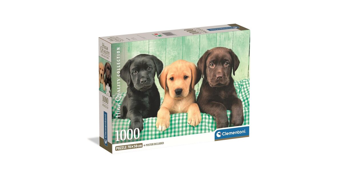 Készülj fel egy remek kikapcsolódásra ezzel a gyönyörű 1000 darabos Clementoni puzzle-lel! Három aranyos labrador kölyökkutya várja, hogy összerakd őket. 🐶