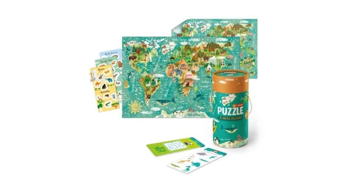 Világ Állatai 40 darabos puzzle és társasjáték: Fedezd fel a világot! 🗺️🌍