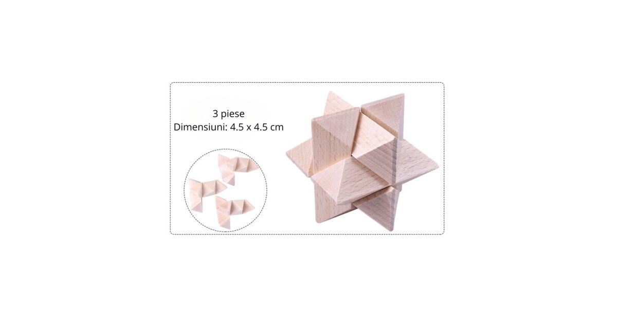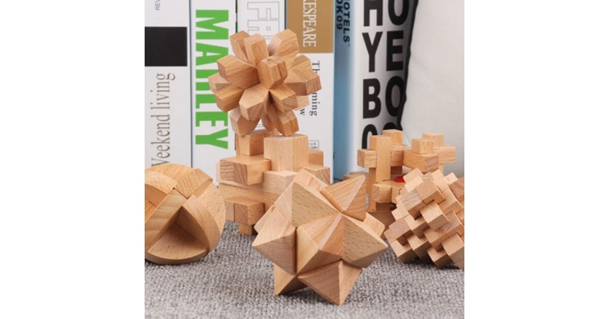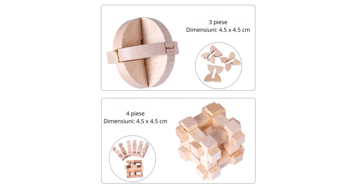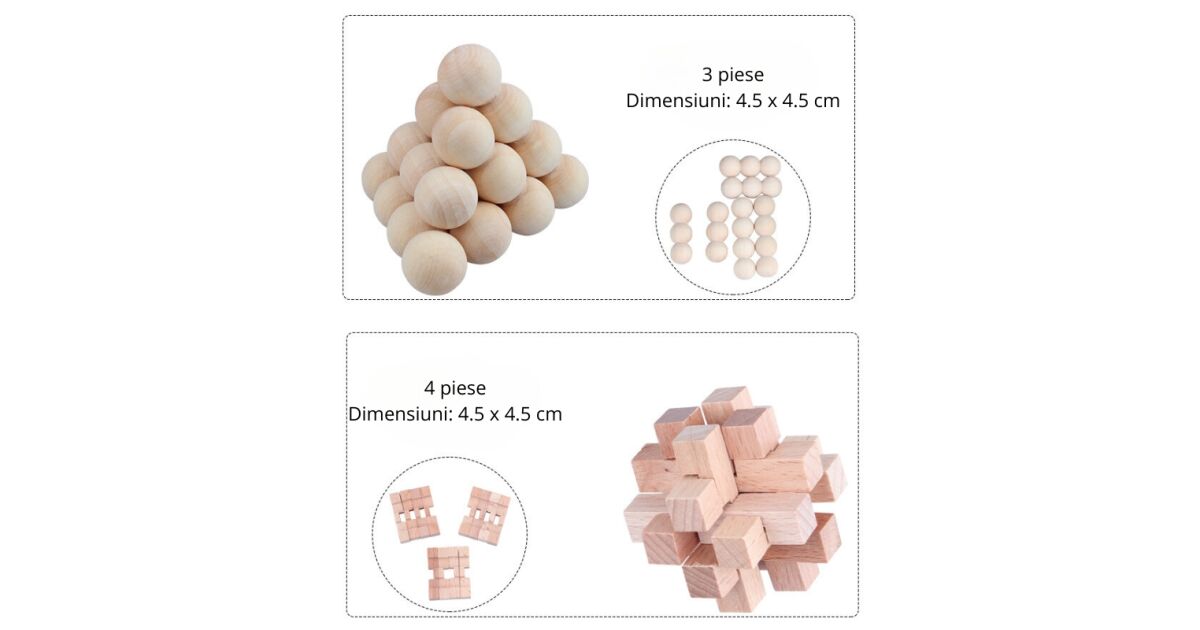 Ezt a terméket így is ismerheted: Set 9 Puzzle-uri, din Lemn, Kongming, 4.5 x 4.5 cm, 6 ani+, design propriu si grad de dificultate diferit, joc distractiv care necesita gandire logica, indemanare