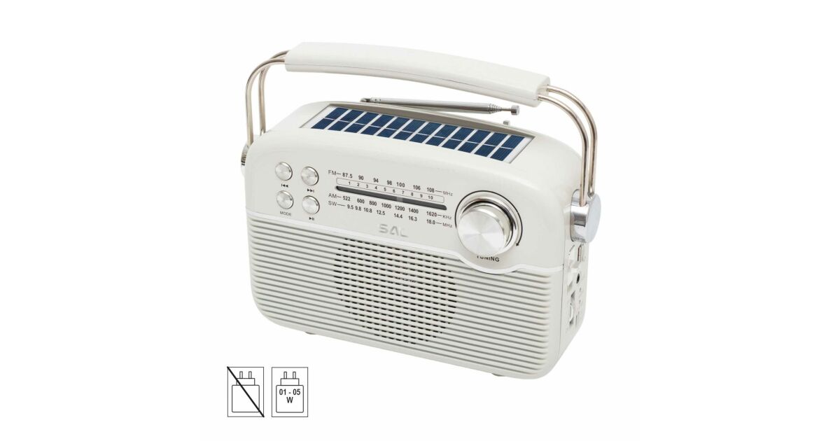 A SAL RPR9 egy sokoldalú, napelemes rádió, amely tökéletes választás, ha megbízható zenelejátszót keresel, ami bárhol használható. Élvezd a rádióadásokat és a kedvenc zenéidet a beépített funkcióknak köszönhetően!