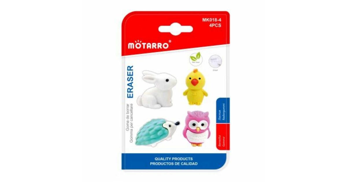 Ez a 4 darabos radírkészlet aranyos állatfigurákkal vidámabbá teszi az iskolai munkát! A részletgazdag kidolgozás és élénk színek garantáltan felkeltik a gyerekek figyelmét, miközben hatékonyan radíroznak.