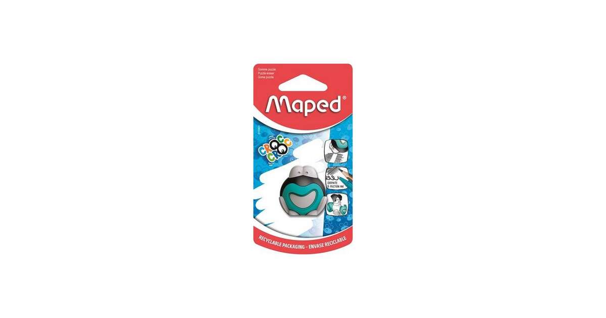 A Maped Croc Croc Puzzle béka radír nem csak egy egyszerű radír, hanem egy szórakoztató puzzle játék is! A vidám béka design feldobja a tanulást, miközben hatékonyan radírozza a grafitot és a radírozható tintát.
