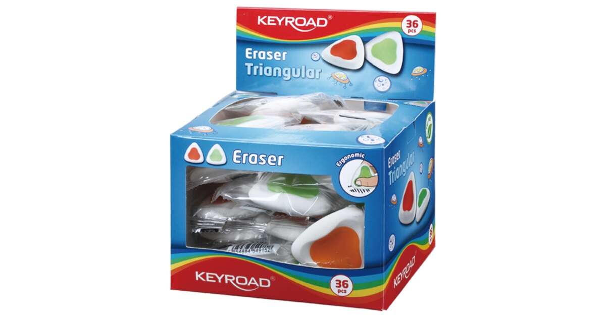Ezt a terméket így is ismerheted: Radír, PVC mentes 36 db/display Keyroad Triangular vegyes színek