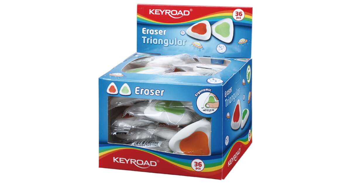Radír, PVC mentes 36 db/display Keyroad Triangular vegyes színek leírása