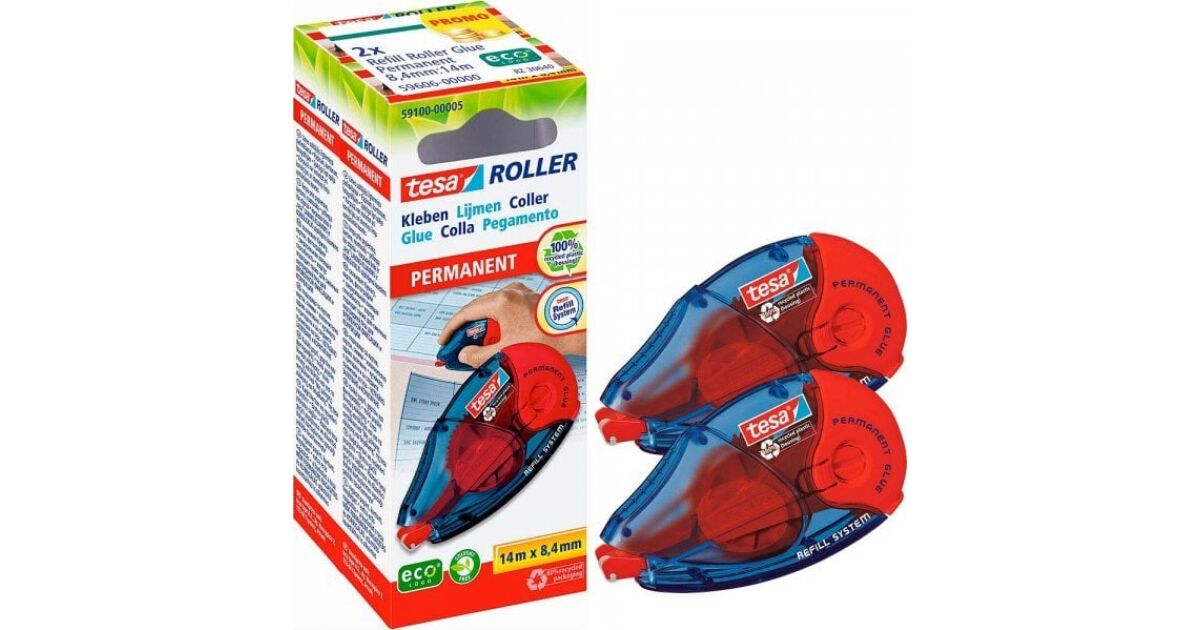 Kleberoller Permanent EcoLogo, nachfüllbar bar, 2er Pack (kék/átlátszó, 2x 14 méter)