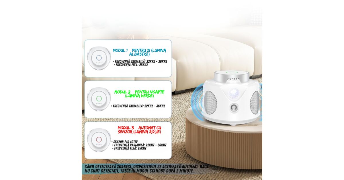 - Kettős ultrahang: Két különböző frekvenciájú ultrahangot használ a még hatékonyabb védelemért.