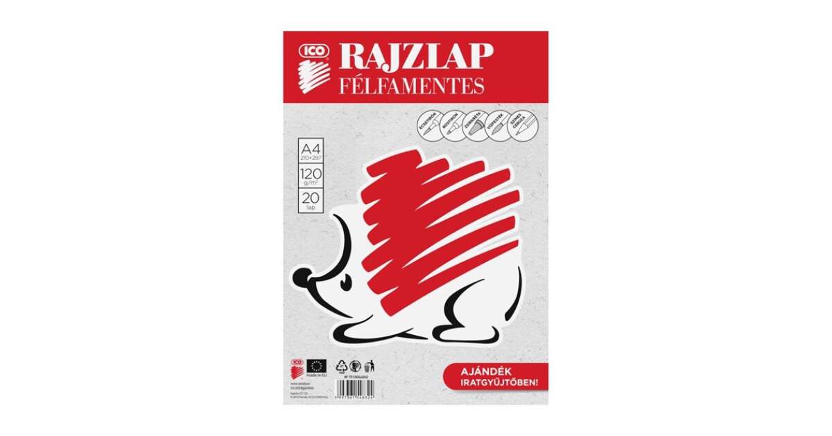 ICO Süni Rajzlap A4-es méretben - 20 db félfamentes rajzlap ajándék irattartóval 🦔