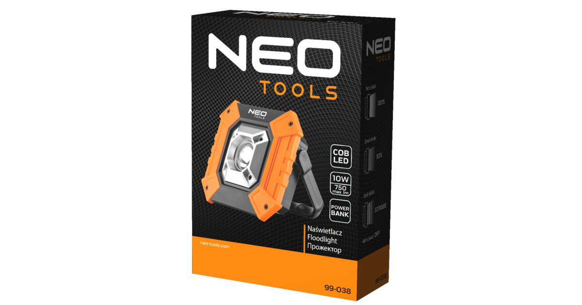 Ezt a terméket így is ismerheted: Neo Tools 99-038 reflektor, talpas, elemes 3xaa ,cob led 750lum, powerbank funkció, 10w, Narancs/Fekete
