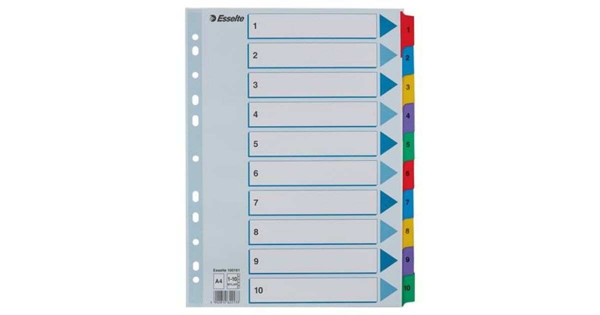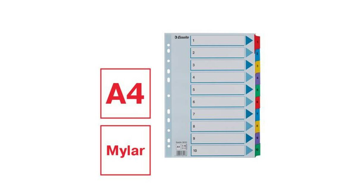 Ezt a terméket így is ismerheted: Regiszter Esselte 1-10 mylar 1-10 A4 Esselte 10db rendelési egység ár 1db-ra