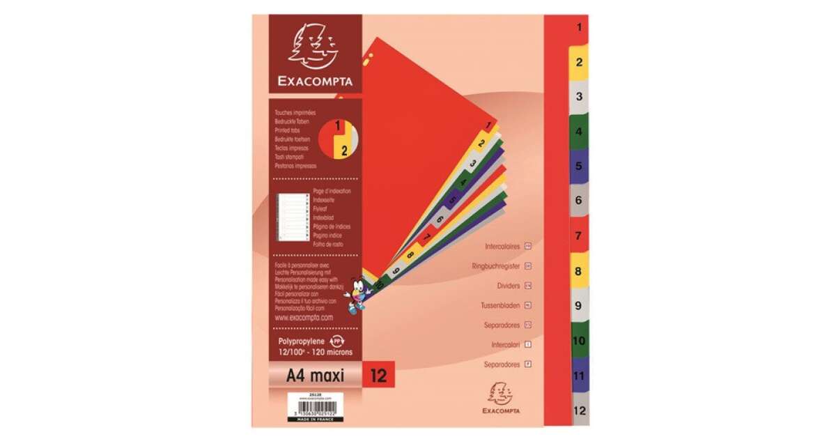 Ezt a terméket így is ismerheted: Exacompta Színes Osztók - 12 db - A4 Maxi