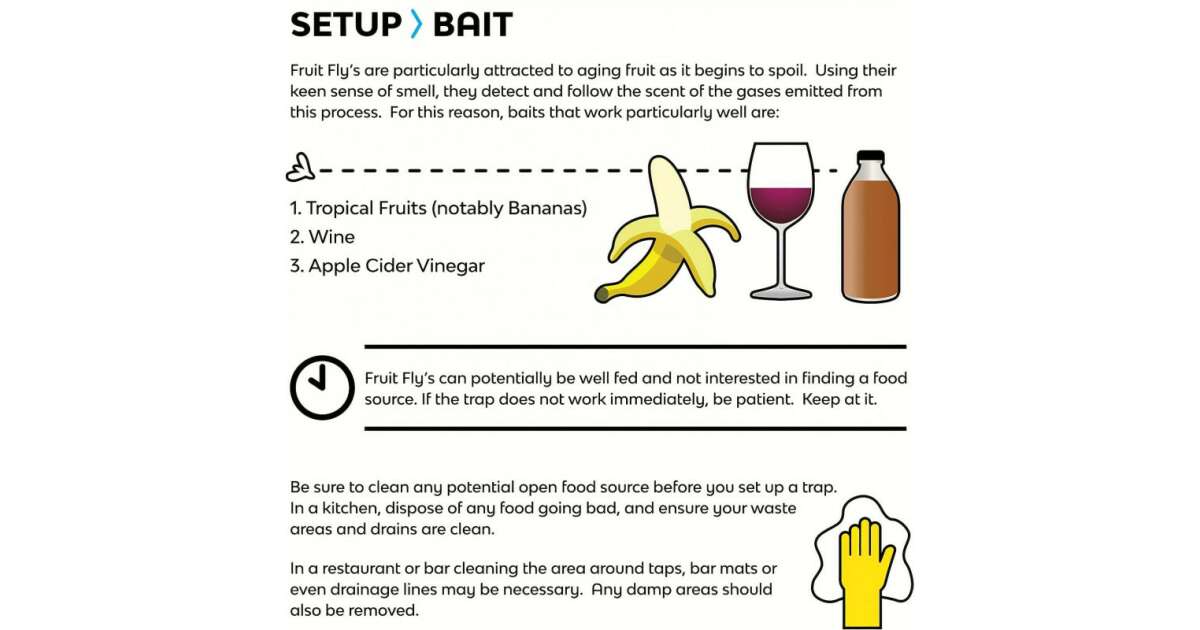 Tipp: A gyümölcslegyek különösen vonzódnak az érett gyümölcsökhöz. A csapda hatékonyságának növelése érdekében tartsd tisztán a konyhát és távolítsd el az elromlott élelmiszereket.