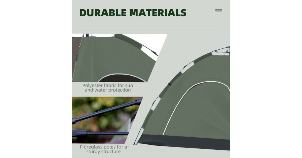 Kemping sátor, 4 személyes, vízálló, zsákkal, automata nyitással, zöld és barna, 210x210x135 cm, 210x210x135 cm vélemények