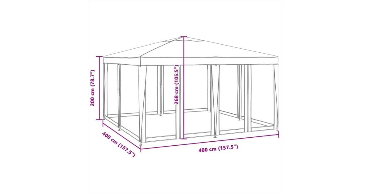 - Méret: 400 x 400 x 268 cm (Szé x Mé x Ma)